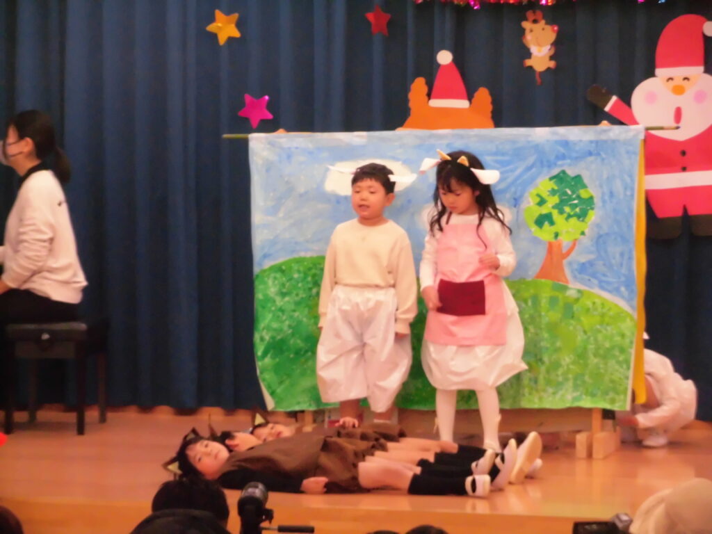 クリスマス会 投稿日 2025年12月25日 更新日 2026年2月19日 著者 大和保育園 カテゴリー 園からの連絡 令和7年12月24日(水)クリスマスイブにクリスマス会を行いました。今年も前後半の2部に分けて実施しました。前半は、さくら、すみれ、たんぽぽ組のかわいい子どもたちの発表があり、後半は、もも、うめ、ばら組の一回り大きく成長した子どもたちの歌や合奏、ダンス、劇など素晴らしい発表がありました。いつ見ても、子どもたちが一生懸命取り組んでいる姿には、心を打たれます。