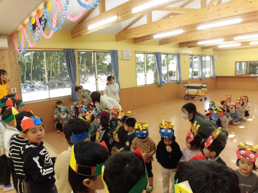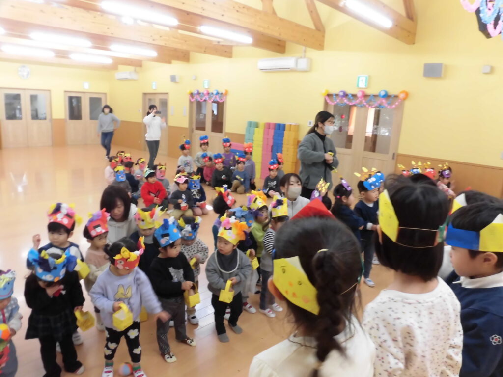 豆まき集会 投稿日 2026年2月19日 著者 大和保育園 カテゴリー 園からの連絡 2月3日(火)保育園で豆まき集会を行いました。立春の前日節分は、「季節の分かれ目」という意味があり、季節が変わる前日のことを指します。季節の変わり目には、鬼が生じると考えられ、その邪気を払うために豆まきをするそうです。邪気を払うために子どもたちも大きな声で豆まきをしました。